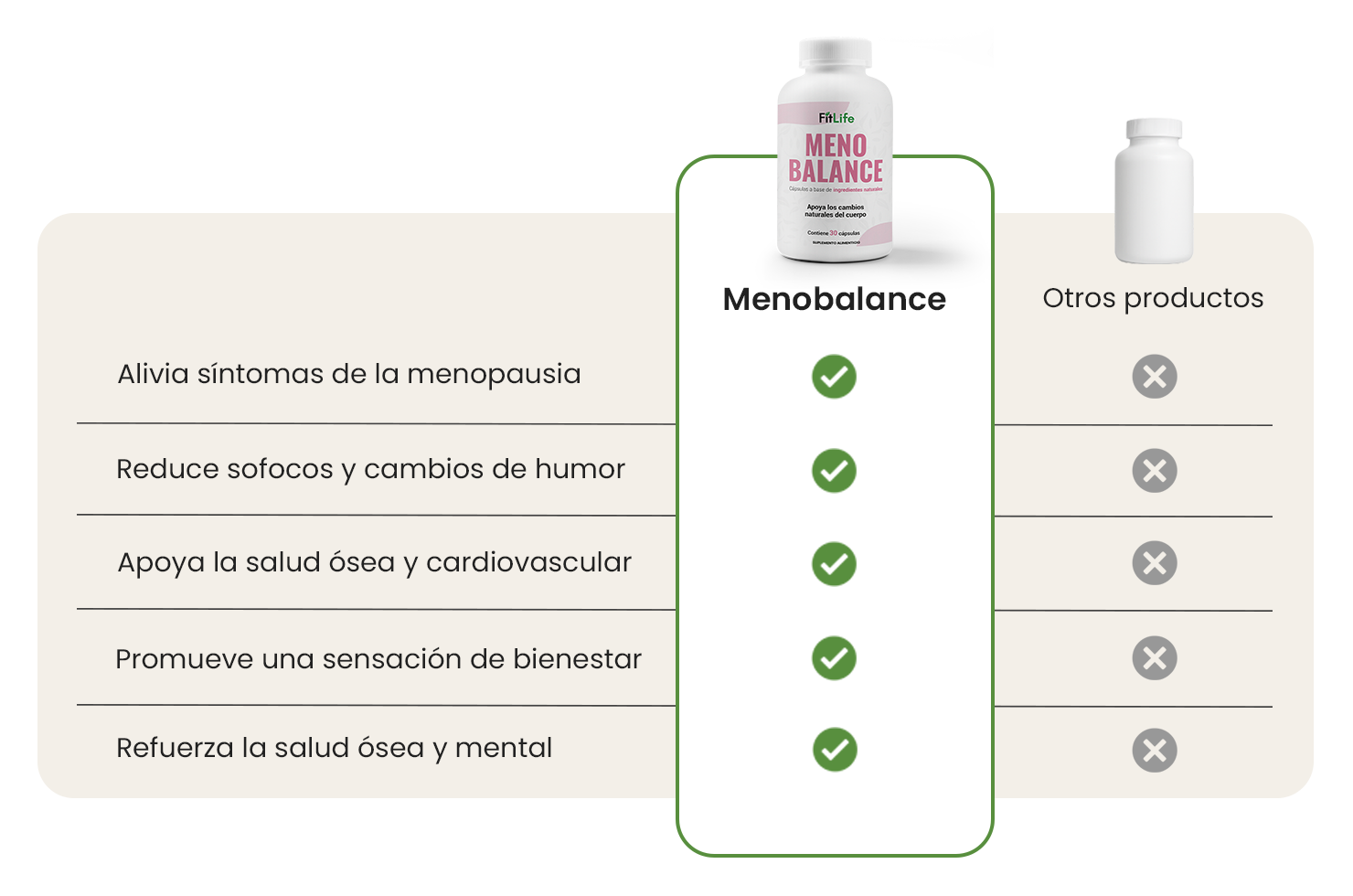 Los cambios hormonales pueden afectar tu energía, ánimo y descanso. Menobalance está pensado para mujeres que buscan sentirse equilibradas y en control durante la menopausia o el SOP. Una fórmula natural que acompaña tu bienestar día y noche.