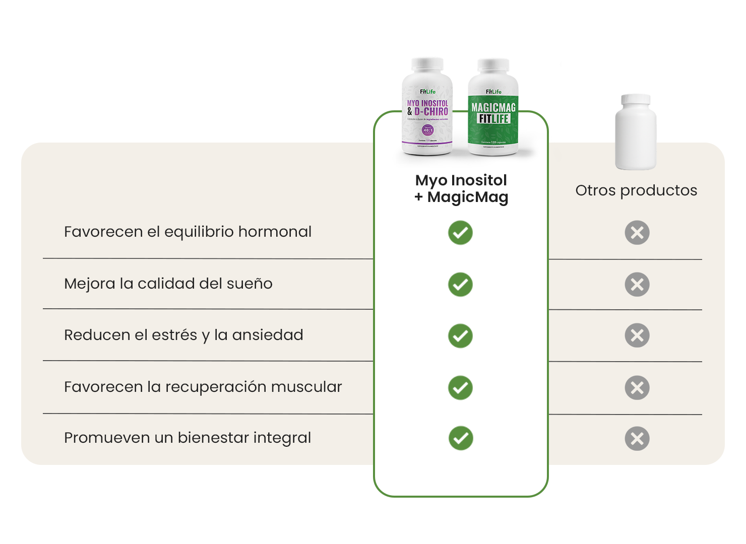 Equilibrio hormonal y bienestar integral en un solo bundle. Esta combinación ayuda a regular ciclos menstruales, reducir síntomas del SOP y al mismo tiempo promueve relajación, mejor descanso y reducción de la fatiga. Perfecto para mujeres que buscan armonía física y emocional.